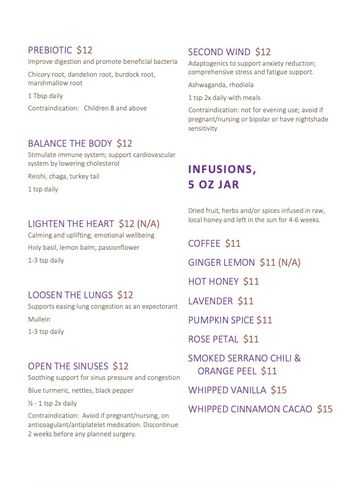 Why have plain honey when you can have a pop of vanilla? Or how about a hint of cacao and cinnamon? Lavender or rose petal maybe? Our infused honeys are great on pancakes or in your morning shake, on plain yogurt with some berries, or even by the teaspoonful. Yummmm!
